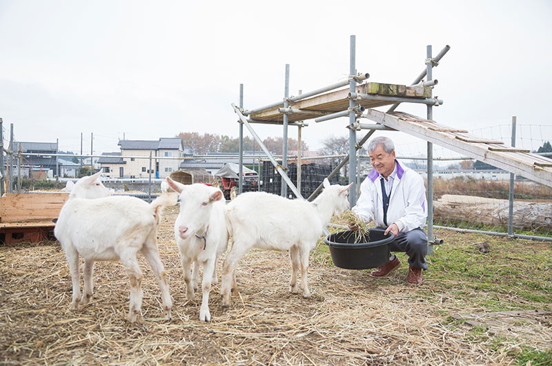 ヤギは去年から買い始めました。昔は矢吹町でも飼う人がたくさん居て、お乳を売っている人もいたんですよ。ヤギは子どもを産まないとお乳を出さないので、早く子どもが産まれて欲しいんですけどね。まだまだこれからです。