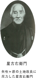 農民が苦しむ姿を幼少から目にしていた男が立ち上がる。江戸末期に矢吹町大和内の庄屋の次男として生まれた星吉右衛門は、地域の農民と矢吹ヶ原の治水整備に尽力。明治の初めには、近隣の農民と協力して取水堰(万歳堰)を造成し、地域念願の耕作地拡大の成果を上げたが、根本的な問題には至らなかった。