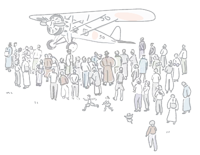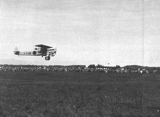 愛国福島号が矢吹ヶ原に着陸(昭和7年9月18日)飛行機を一目みようと、近隣から5万人もの見物人が集まった。
