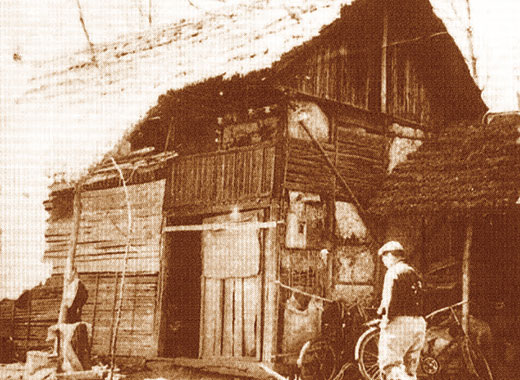 入植者の家飛行場跡に入植当時の家。(昭和35年頃)当時の家はすきま風がひどく、吹雪の翌朝は、枕元に雪が積もっていたという。