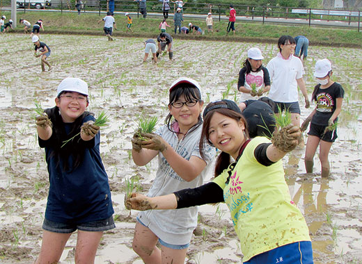 町内の若手農業集団「ぐるぐるノーカーズ」と、東京農業大学の昆虫機能開発研究室がタッグを組んで、カブトエビを田んぼに放ち、無農薬栽培での環境配慮型の農業にチャレンジしている。収穫した米は、東農大の学食で提供されたり、厚木キャンパスで行われた「おいしい矢吹」野菜PRイベントで配布された。田植えや稲刈りなどの作業は矢吹町の小学生も参加し、首都圏との交流に一役買っている。